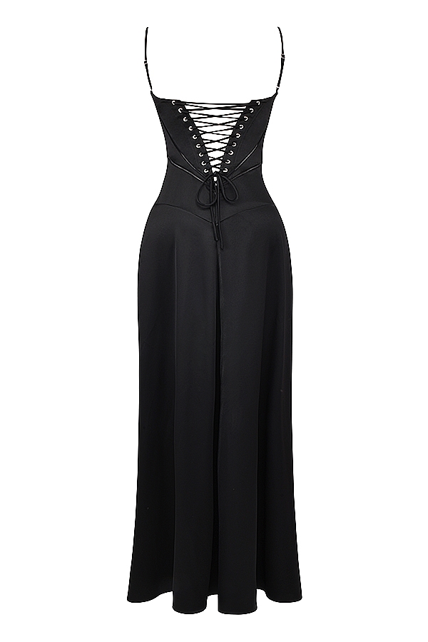 Black Lace Up Maxi Dress