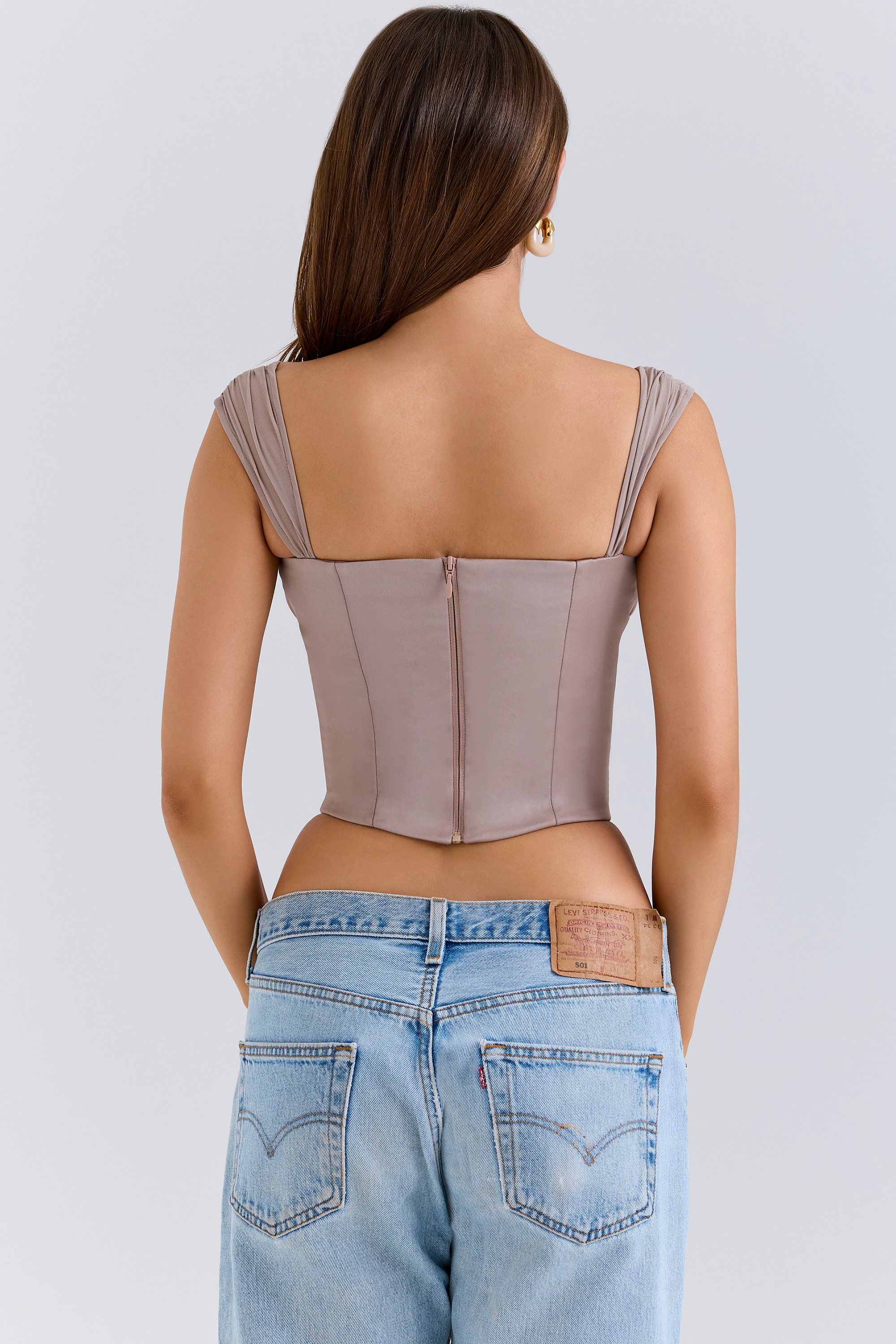 Anja Mocha Georgette Cap Sleeve Corset Top