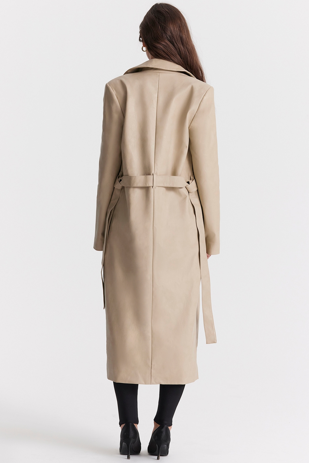 Beige Vegan Leather Trench Coat