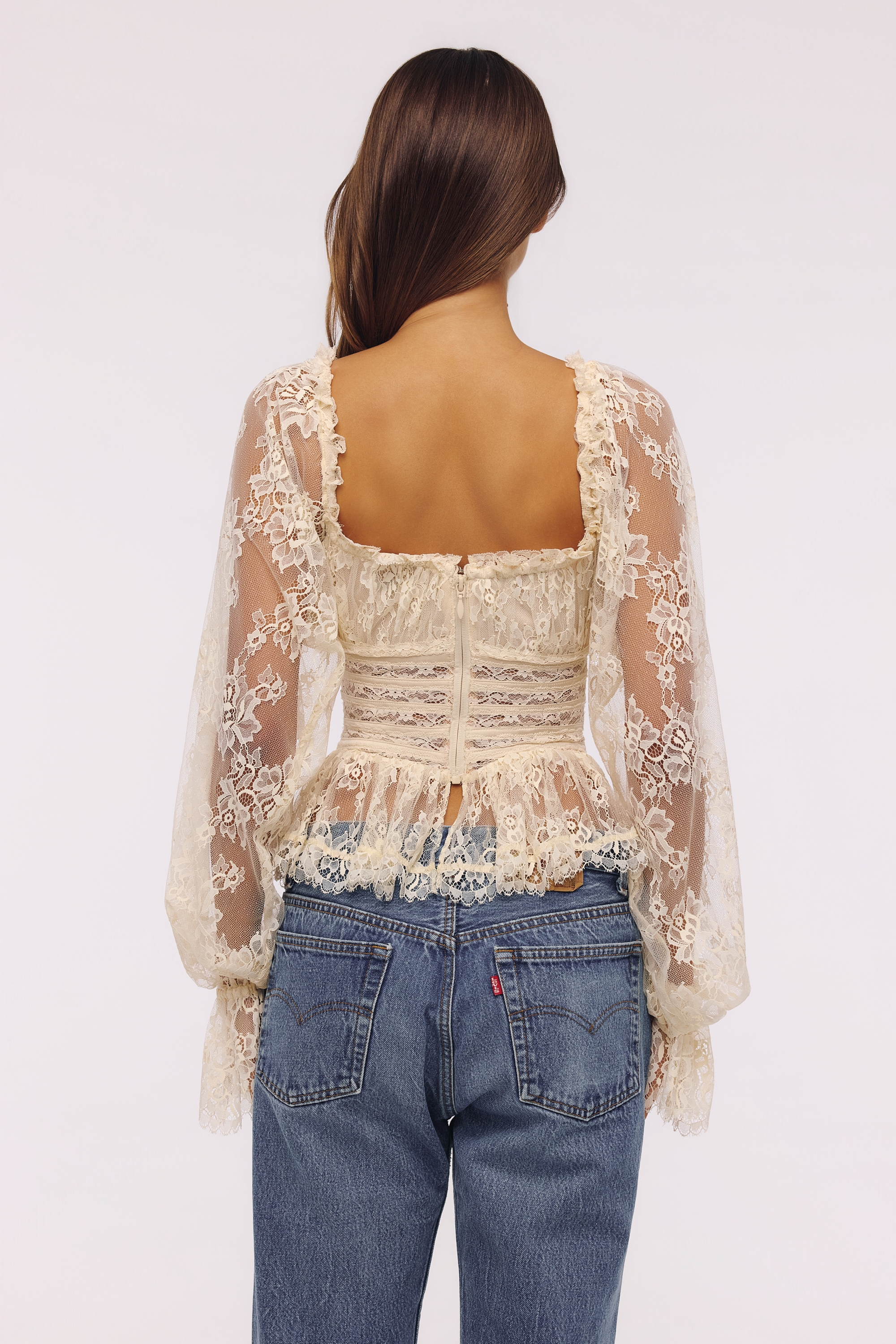 Cara Vintage Ivory Long Sleeve Lace Peplum Top