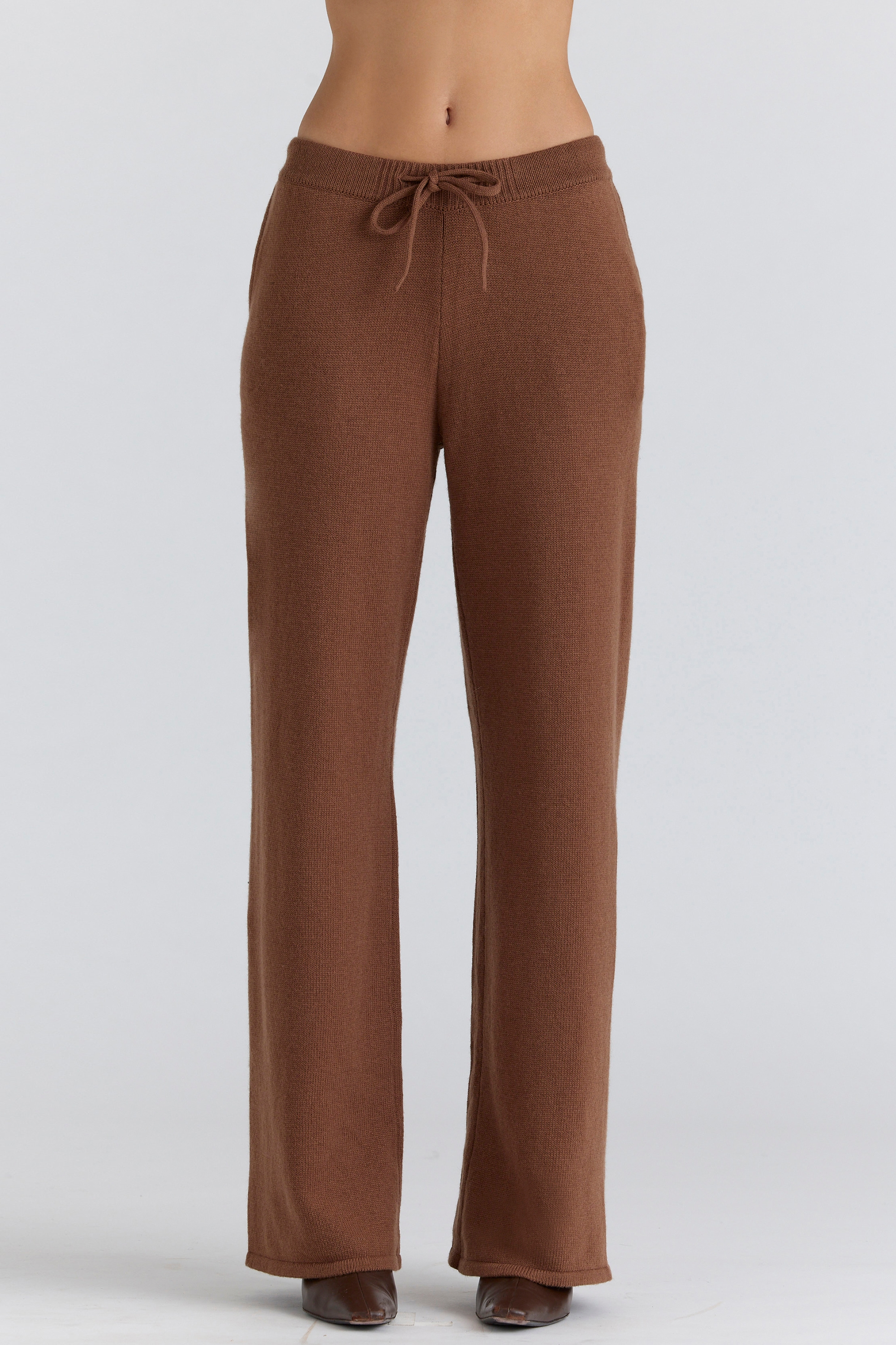 Tan Cashmere + Wool Wide Leg Trousers