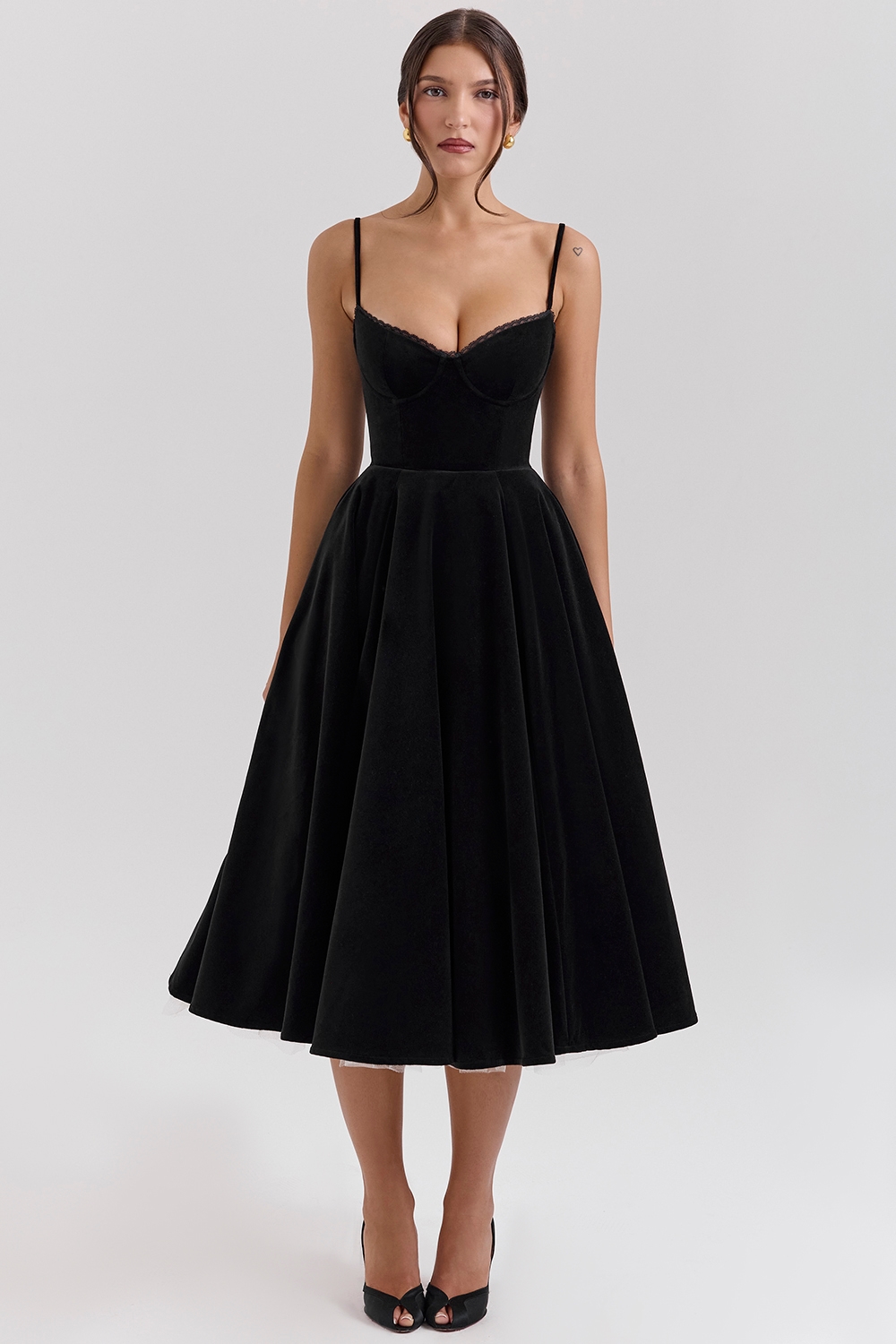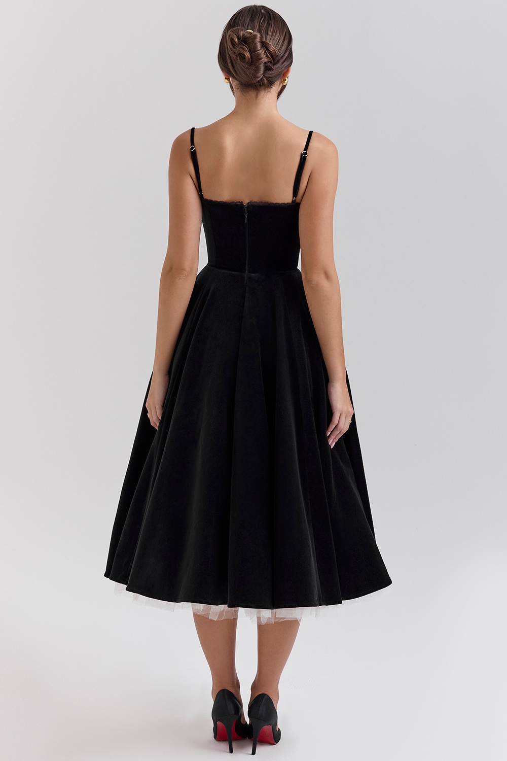 Mademoiselle Black Velvet Tulle Midi Dress + Bolero