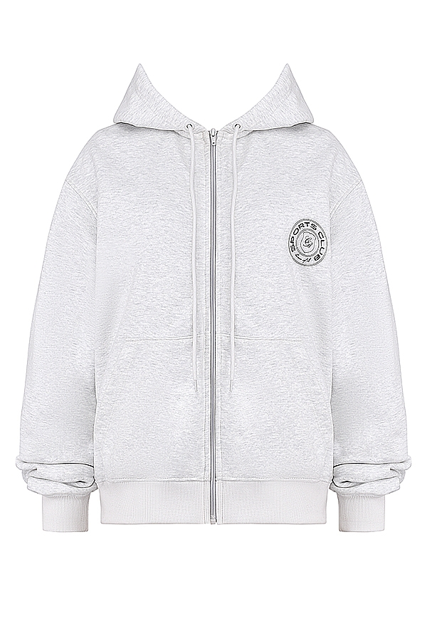 Mirage Light Grey Marl Cotton Fleece-Back Zip Through Hoodie