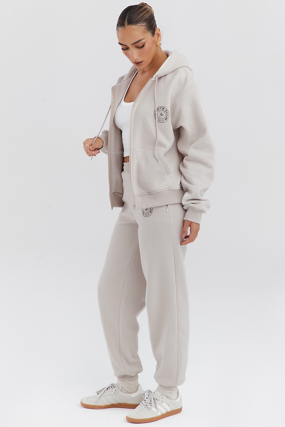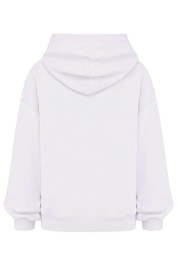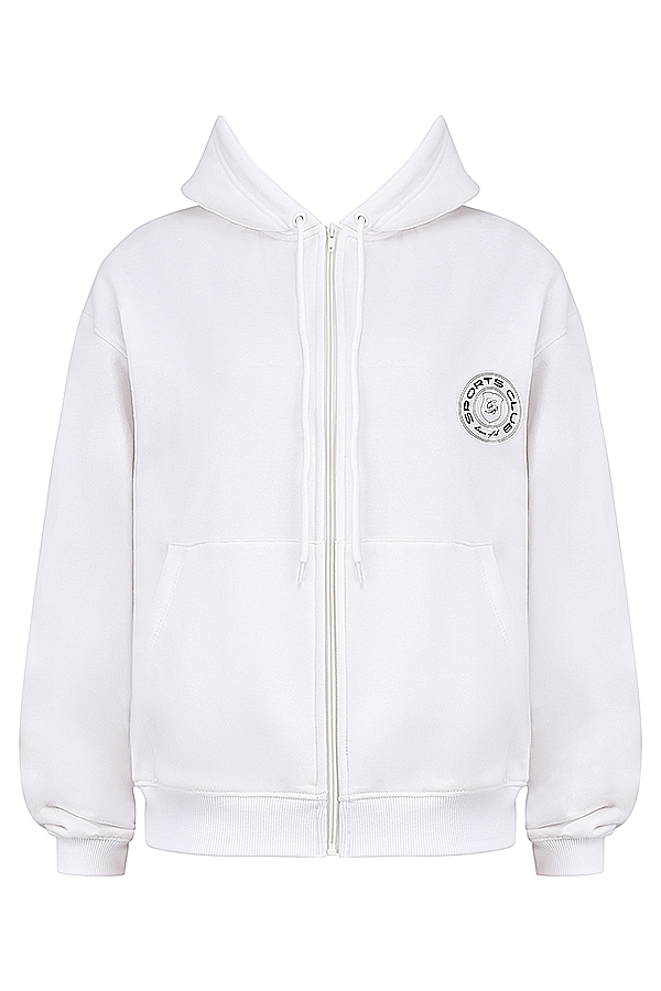 White Cotton Fleece-Back Zip Through Hoodie