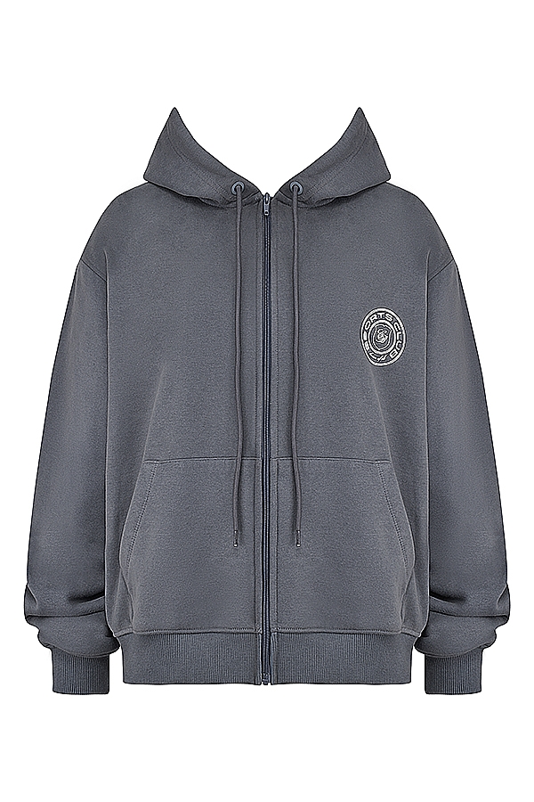 Slate Cotton Fleece-Back Zip Through Hoodie