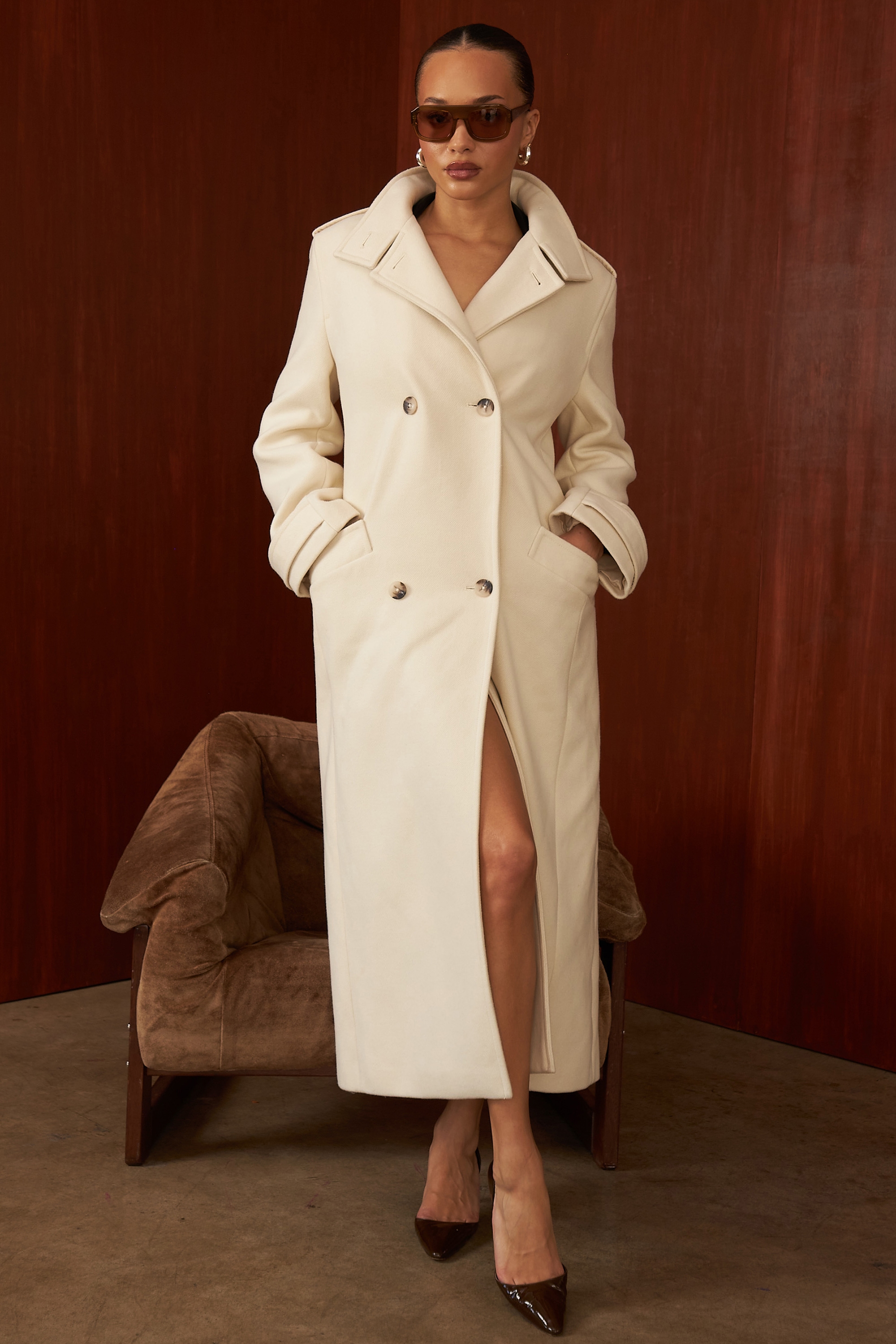 Cream Double Breasted Funnel Neck Coat