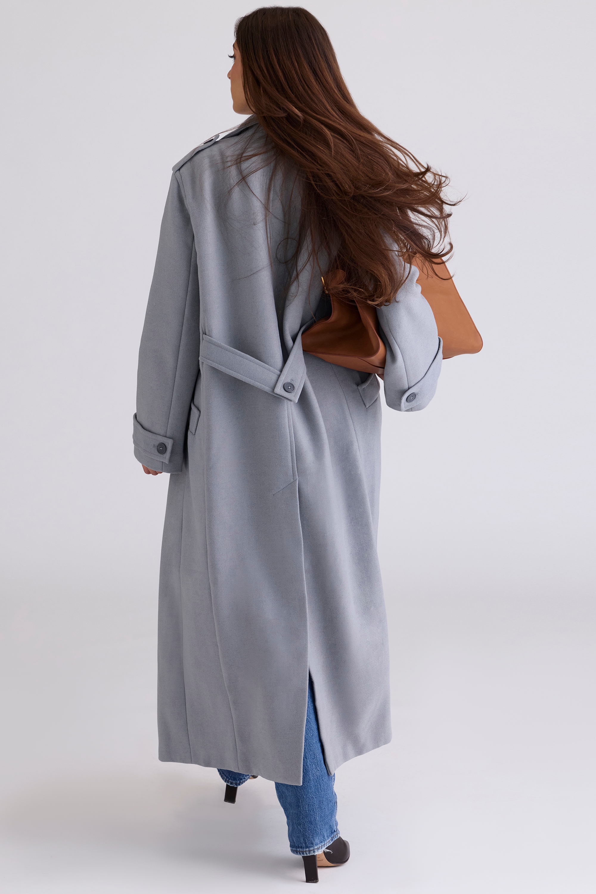 Grey Double Breasted Funnel Neck Coat