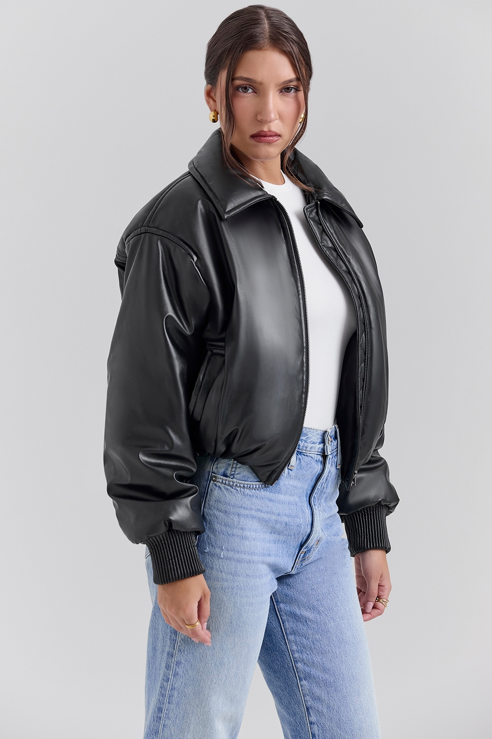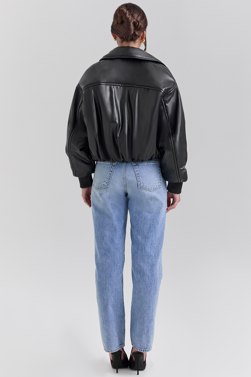 Black Vegan Leather Bomber Jacket