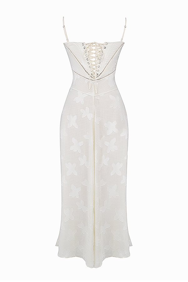 Seren Vintage Cream Floral Lace Back Maxi Dress
